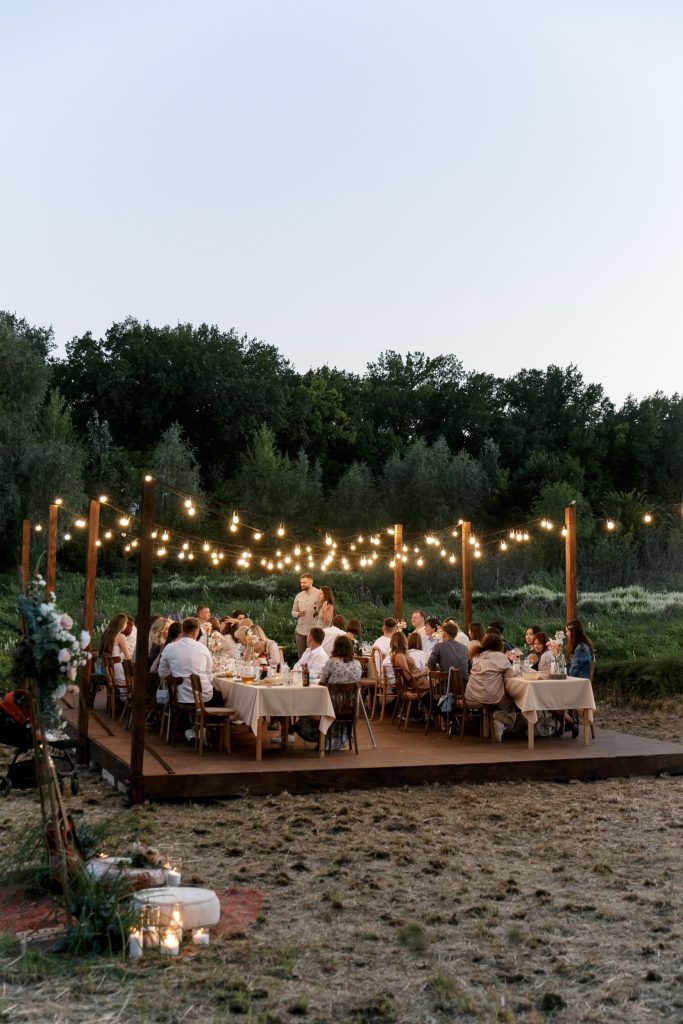 История Анастасии и Александра стала основой для создания нашей уникальной площадки. Несколько лет назад они организовали свадьбу на поляне у озера, собственноручно соорудив деревянный настил, который стал центром торжества.